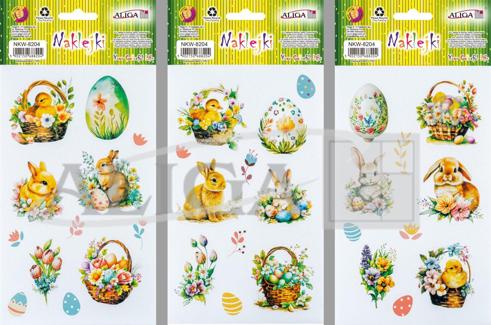 Wielkanocne naklejki do dekoracji, różne wzory, rozmiar 10 x 12,5 cm.